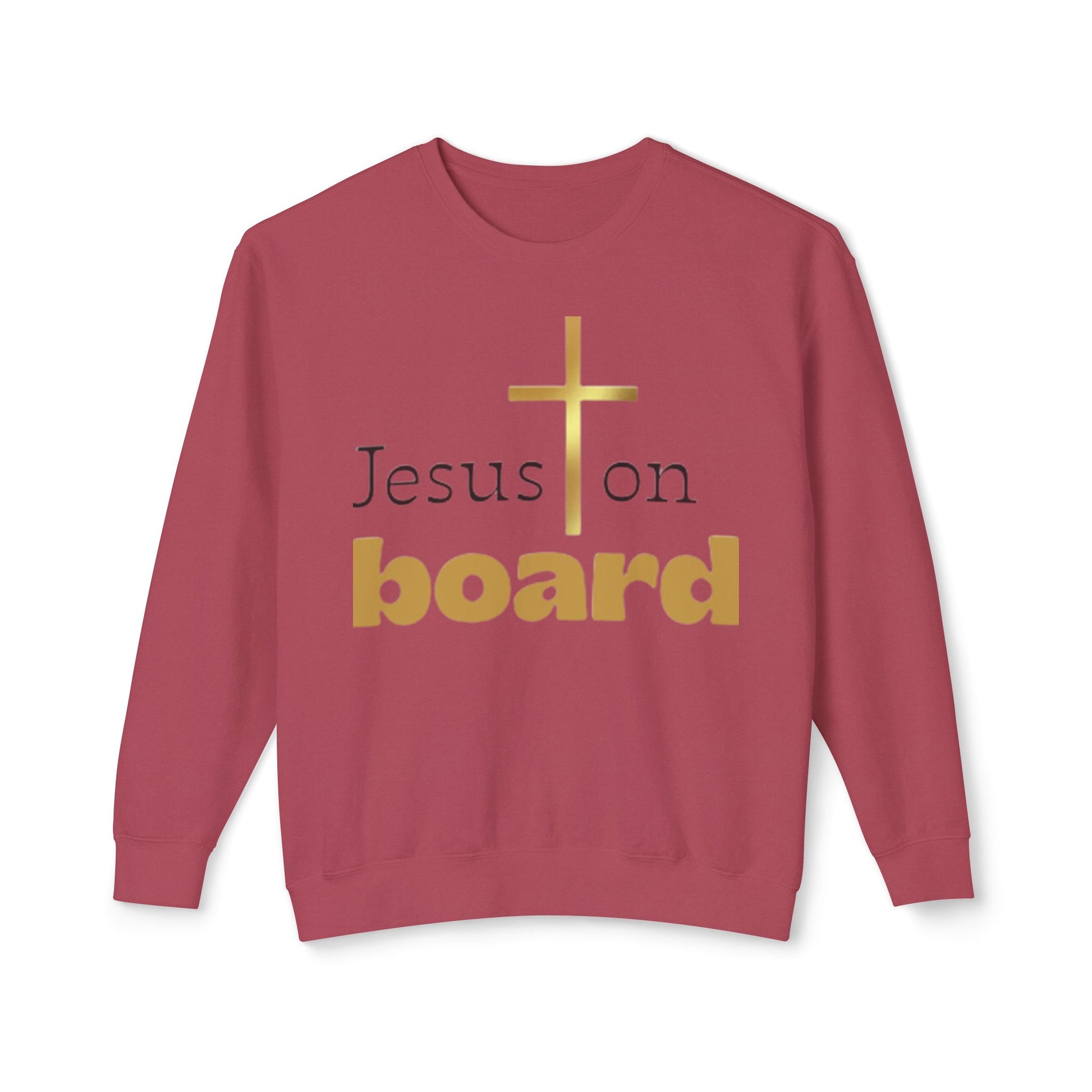 Our Soft, light, and quietly crew neck pairs are airy fit with a subtle faith-forward design. A slender gold cross rises above warm, rounded lettering that reads “Jesus on board,” creating a calm, uplifting statement without shouting. keep the shape, and the clean,